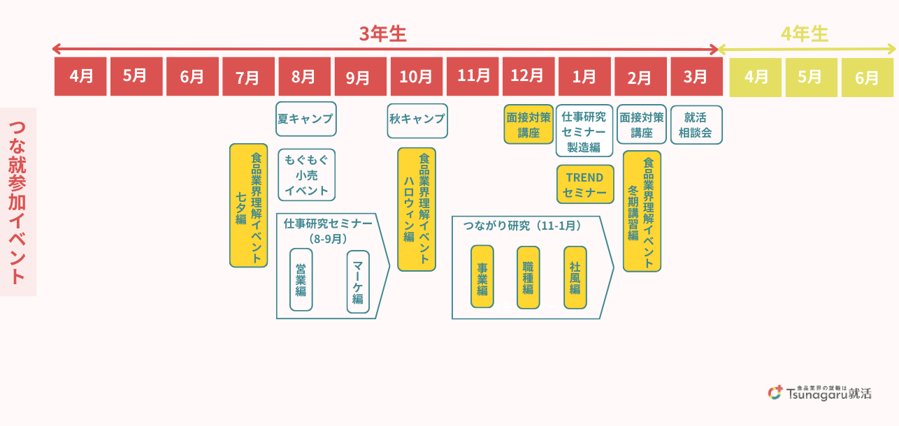 ※黄色に塗られたイベントはようだい先輩が実際に参加したつな就企画です