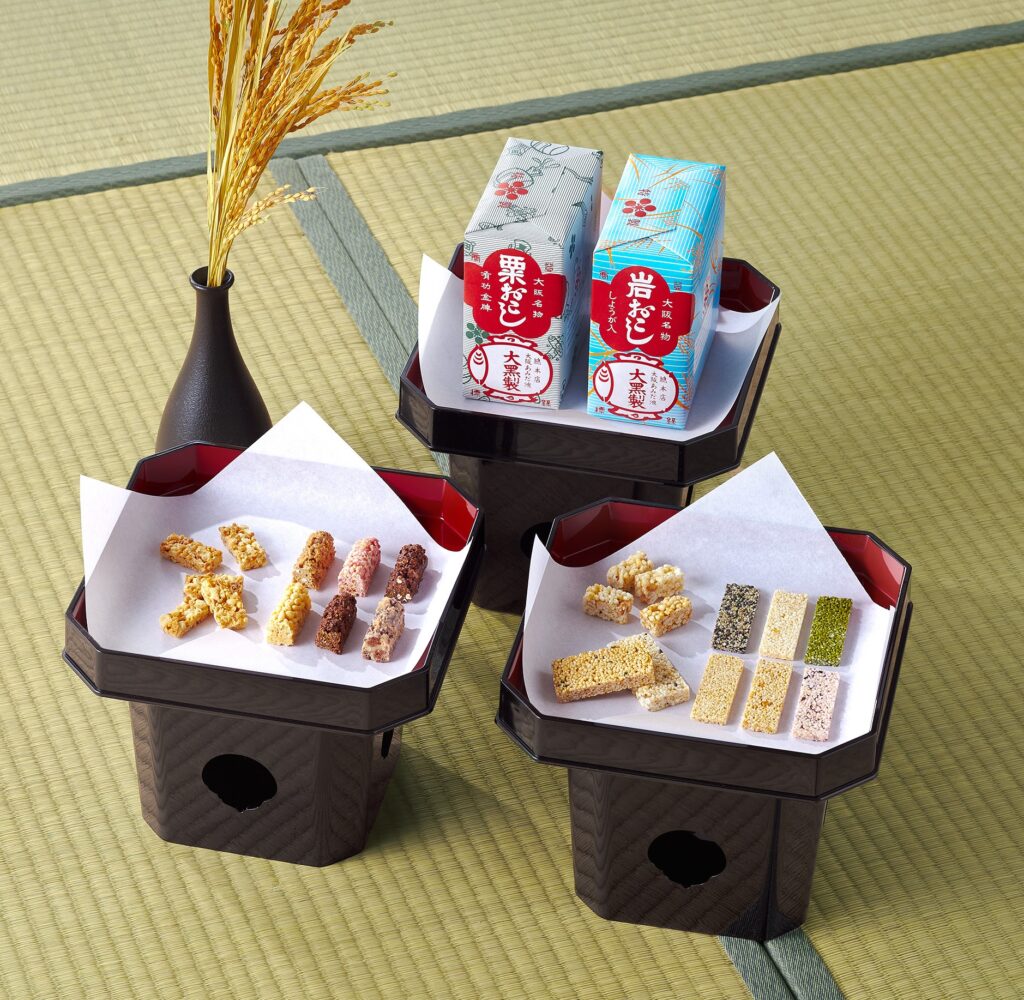 江戸時代半ばの文化2年(1805年)に創業してから200余年、大阪のお土産菓子を製造販売しています。昔ながらの大阪名物「粟おこし」をはじめ、100種類以上のアイテムを有する大阪発「おかしづくり」の老舗です。