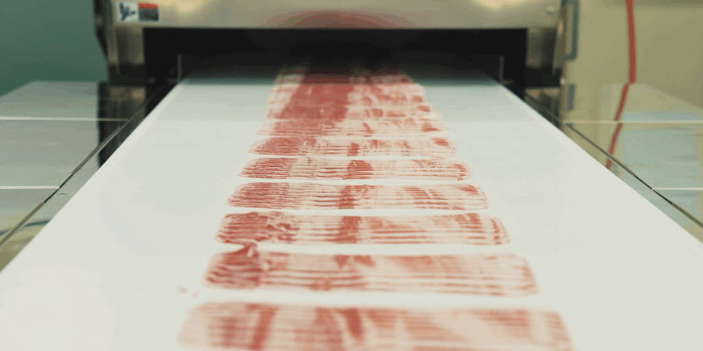 普段、製品を目にすることはありませんが、精肉店はもちろん、大手ハムメーカーやスーパー、飲食店等で使われ、堅実な成長を続けています。ロースハムにしゃぶしゃぶ、ハンバーガーに牛丼・・・。バラエティー豊かなおいしい食事も、食肉スライサーがなければ毎日のテーブルに並ぶことはありません。
