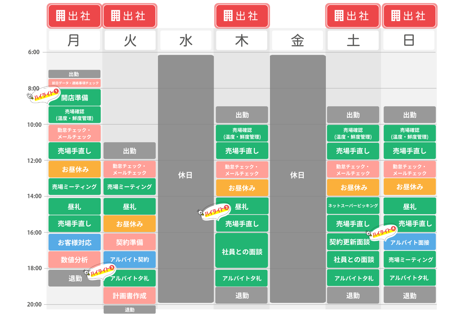 社員の1週間の仕事内容が視覚的にわかる👀!
