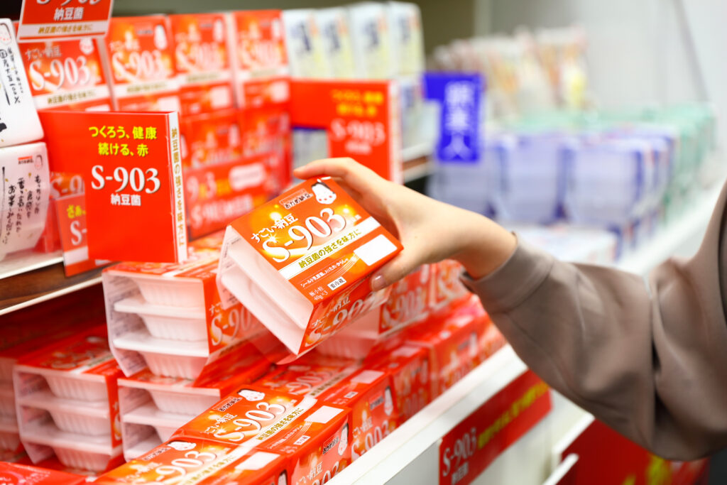 原料である大豆や納豆菌など、一つひとつにこだわりがあります。粒の大きさや食感、たれの味などが異なる、さまざまな納豆をラインナップしています。中でも“すごい納豆S‐903”は、自社で保有している2,200種の菌からカラダを守るS‐903納豆菌を使用し商品化したもの。おいしさも健康も満足できる商品です。